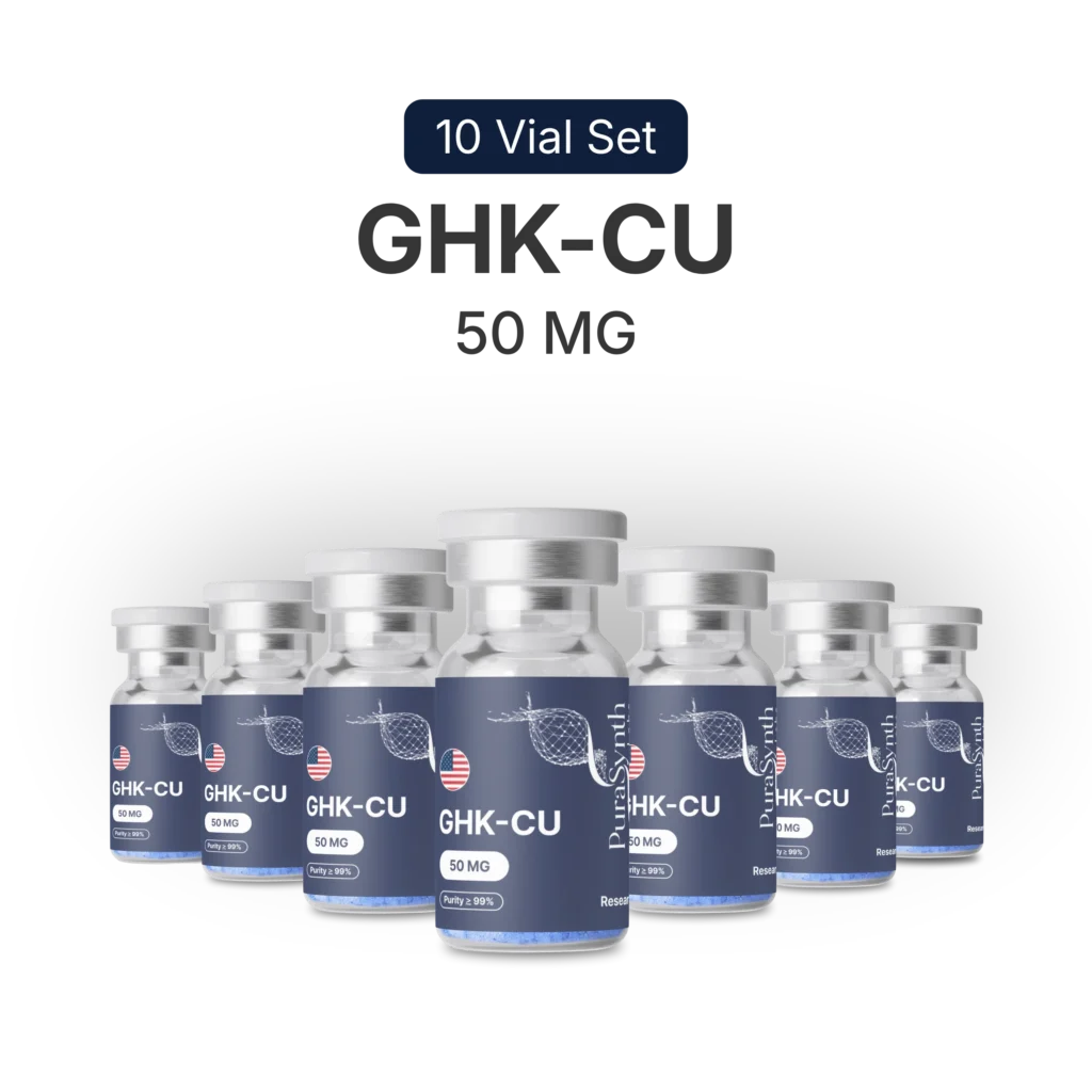 GHK-Cu is a copper research compound composed of three amino acids, commonly examined in controlled studies for its role in cellular activity and tissue-related pathways. It is widely explored in laboratory settings for its interaction with structural and oxidative-response processes. Pura Synth GHK-Cu is produced to high analytical standards and verified through analytical testing for purity and composition.